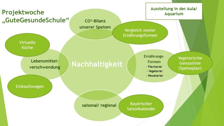 In der Aula und dem „Aquarium“ könnt ihr euch mit vielen praktischen Informationen zum Thema „Nachhaltigkeit“ rund um die Küche versorgen.