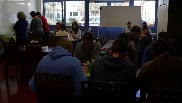Das Bistro war ab 12.30 Uhr bis 13.30 Uhr komplett besetzt. Es mussten sogar Ausweichmöglichkeiten in Anspruch genommen und Besteck und Geschirr rasch gespült werden, da es nicht ausreichte.