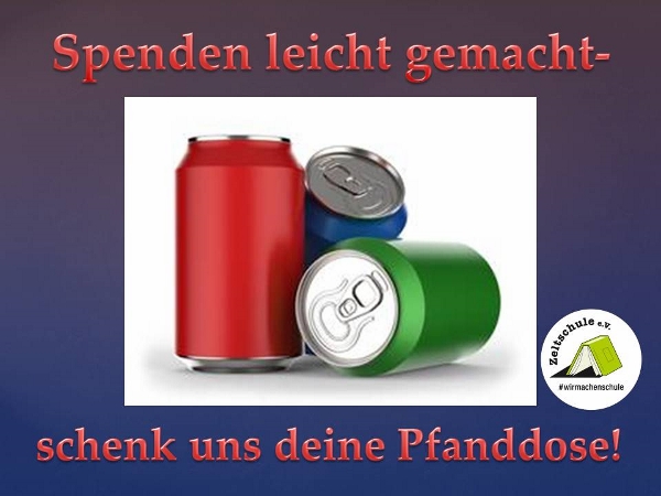 Ganz einfach: Pfandflasche oder- dose spenden! Im Beruflichen Schulzentrum steht absofort eine Tonne, um diese Spenden zu sammeln.