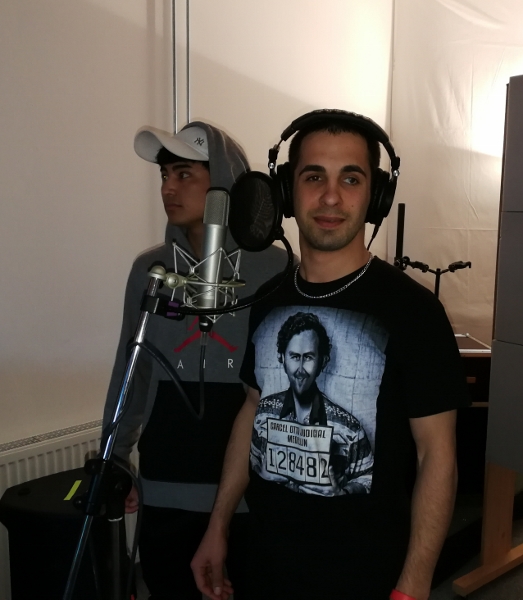Während alle anderen Schüler sich bereits in die Faschingsferien verabschiedeten, traf sich die überaus motivierte Sing-und Rap-Gruppe im Tonstudio zur Aufnahme und legte los.