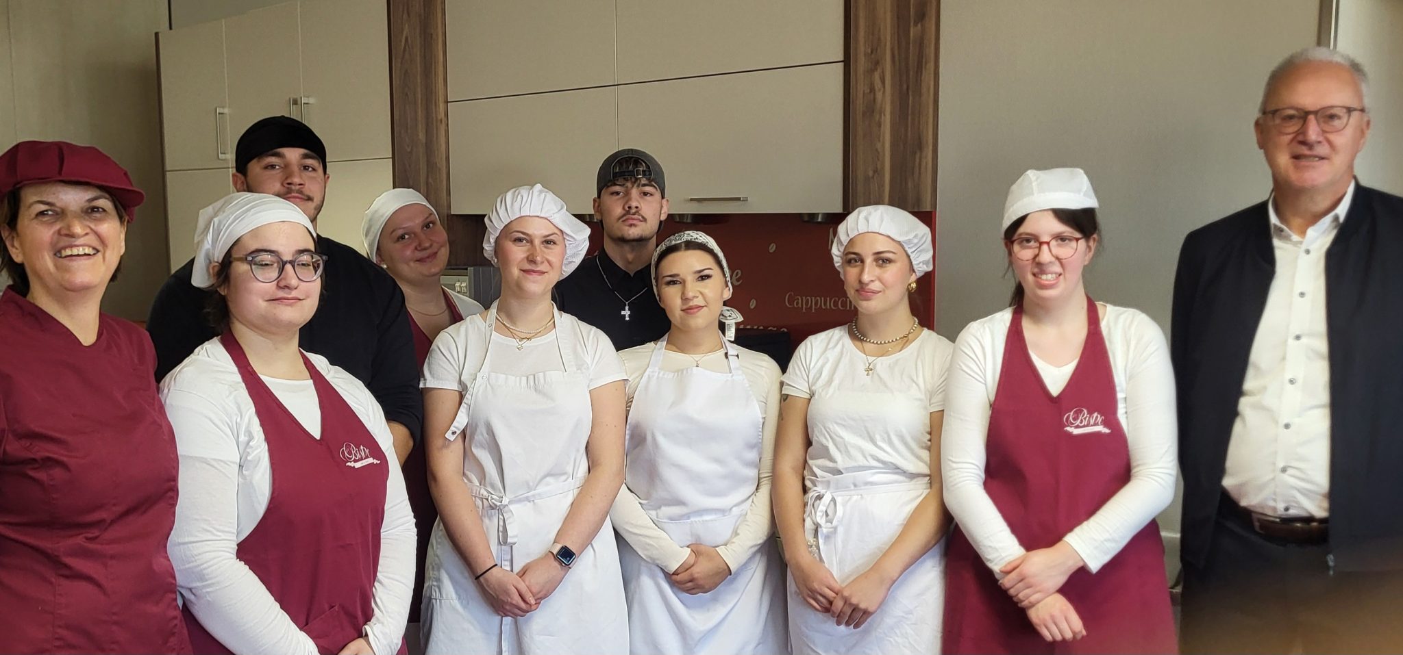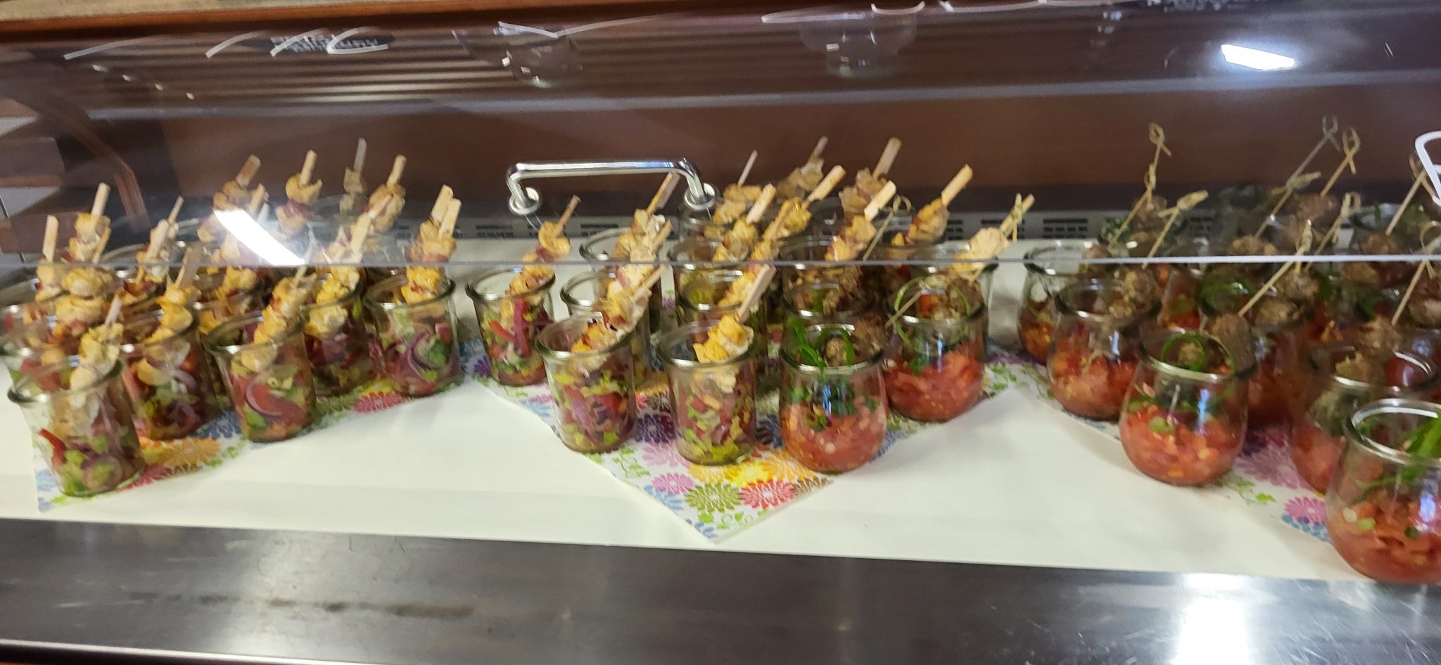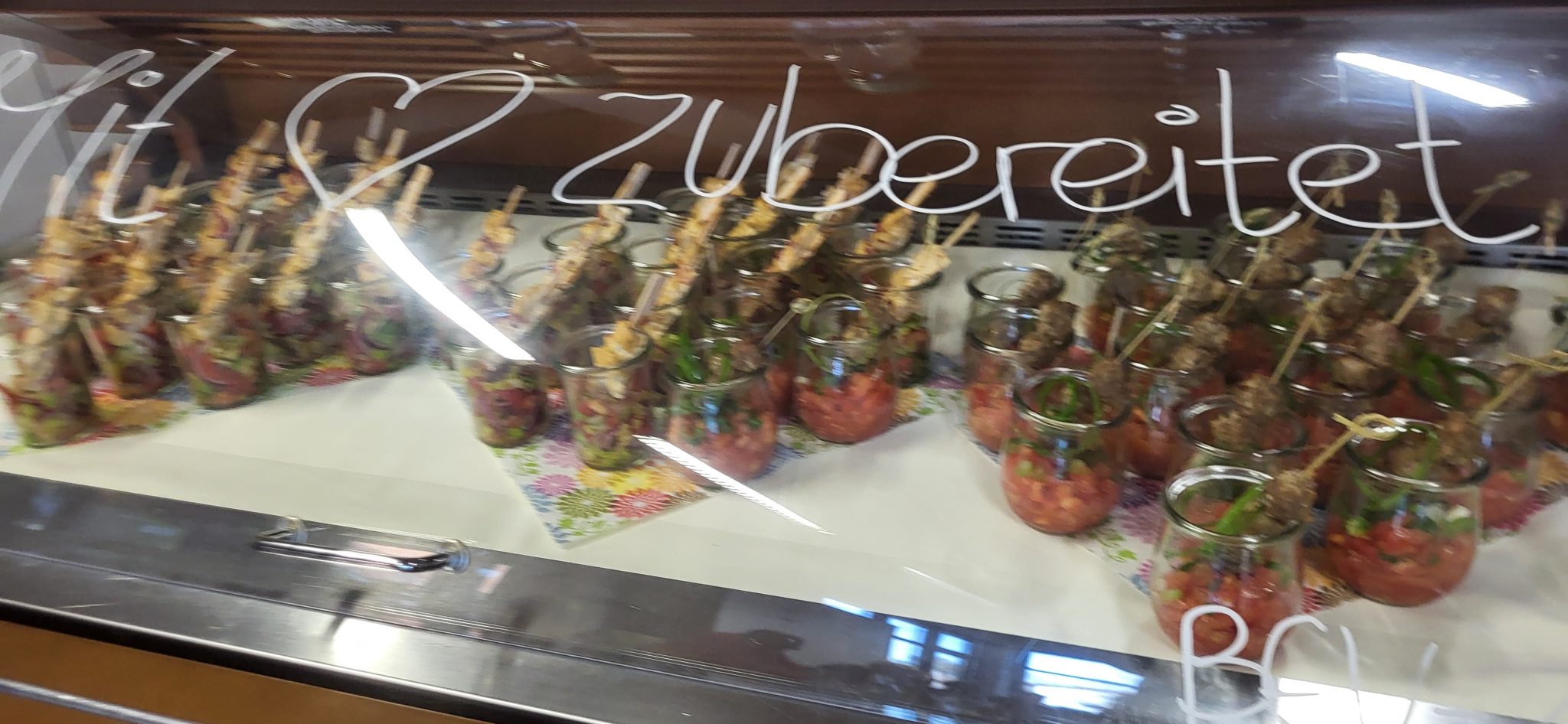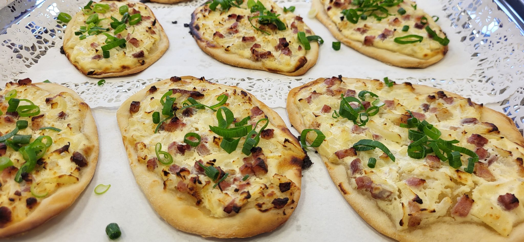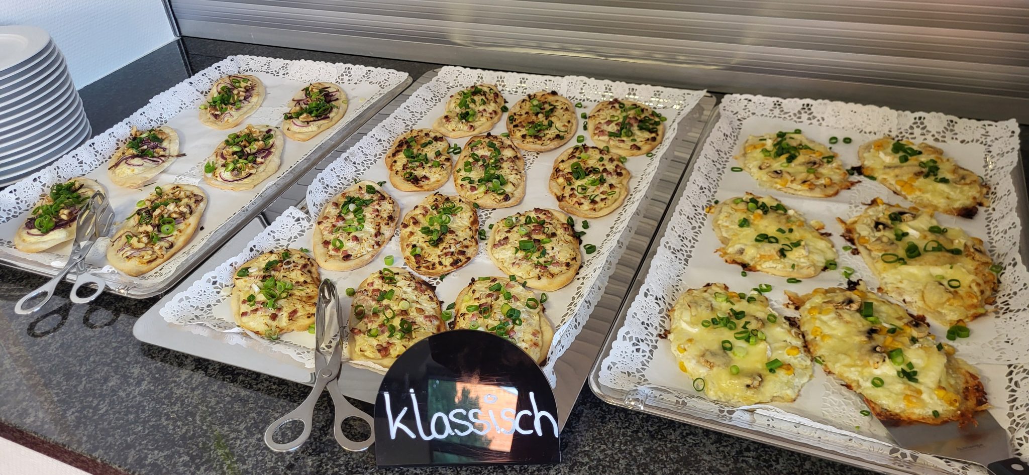 Verschiedene Flammkuchen-Variationen, sowie Salate im Glas mit unterschiedlichen Fleischspießen wurden durch die Schüler vorbereitet.