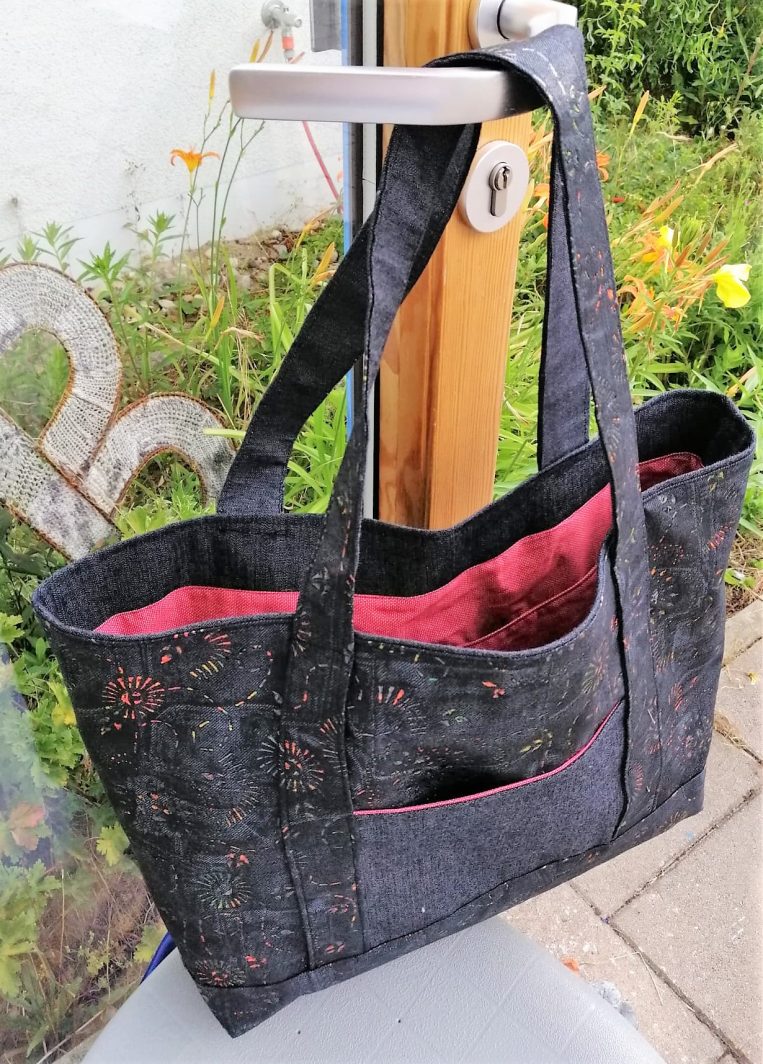 Die Aufgabe war, eine große „Shopping-Bag“ mit Innenfutter und Einschubtaschen innen und außen zu nähen.