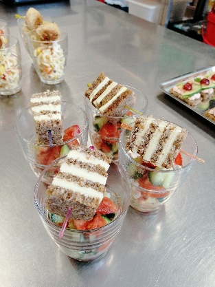 Meine Zielsetzung war es, für das Fingerfood-Büffet eine Speisenplanung durchzuführen. Dafür habe ich verschiedene Speisen zubereitet, die für ein Büffet geeignet wären. Außerdem plante ich für dieses Projekt die Büffetdekoration. Zum Schluss stellte ich die Auswahl der Speisen und der Dekoration meiner Praxisanleiterin Gabriele Ruckdeschel vor und es wurden die passenden Gerichte und die passende Deko für den Schnuppertag ausgewählt.