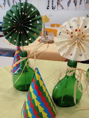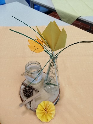 Am Schluss habe ich dann meine Büffet-Dekoration geplant. Aus dem Vorrat meines Praktikums und von mir habe ich zwei Beispieltische eingedeckt.