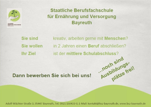 Ausbildung an der Berufsfachschule für Ernährung und Versorgung am BSZ Bayreuth