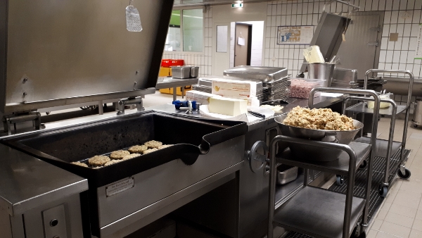 Neben verschiedenen Aktionen, wie „Länderessen“, gibt es vegetarische oder auch mal vegane Gerichte. Herr Wolf erzählte, dass die Küche sehr offen für neue Produkte ist und auch schon mal Insektenmehl verarbeitet hatte.