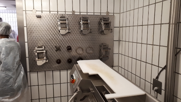 In der „Metzgerei“ wird das Fleisch selbst zerlegt, verschiedene Cutter verarbeiten es zu Fleischteigen, etc.