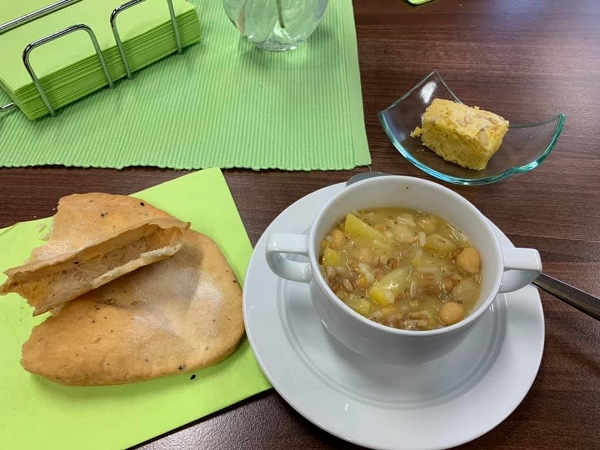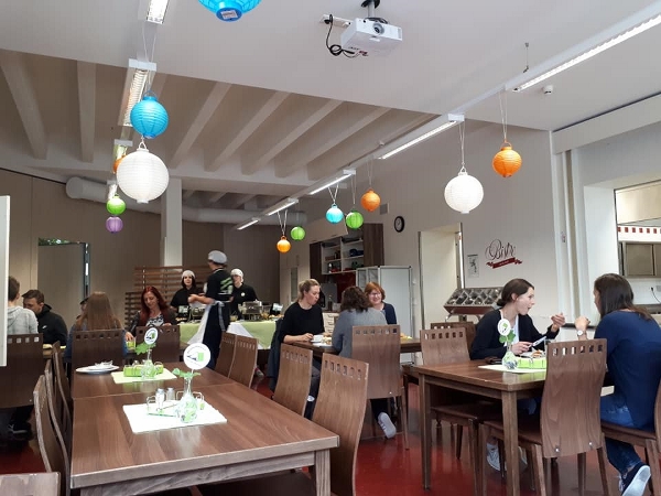 Nach dem Vortrag wurde das syrische Büfett aufgebaut und in dem recht vollen Bistro entstanden noch viele sehr angeregte Gespräche.