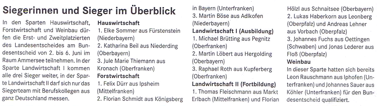 Startseite /Landwirtschaft & Gartenbau / LA - Schulleben / Die Sieger – Quelle: BLW 16, 19.4.2019, S. 15 /