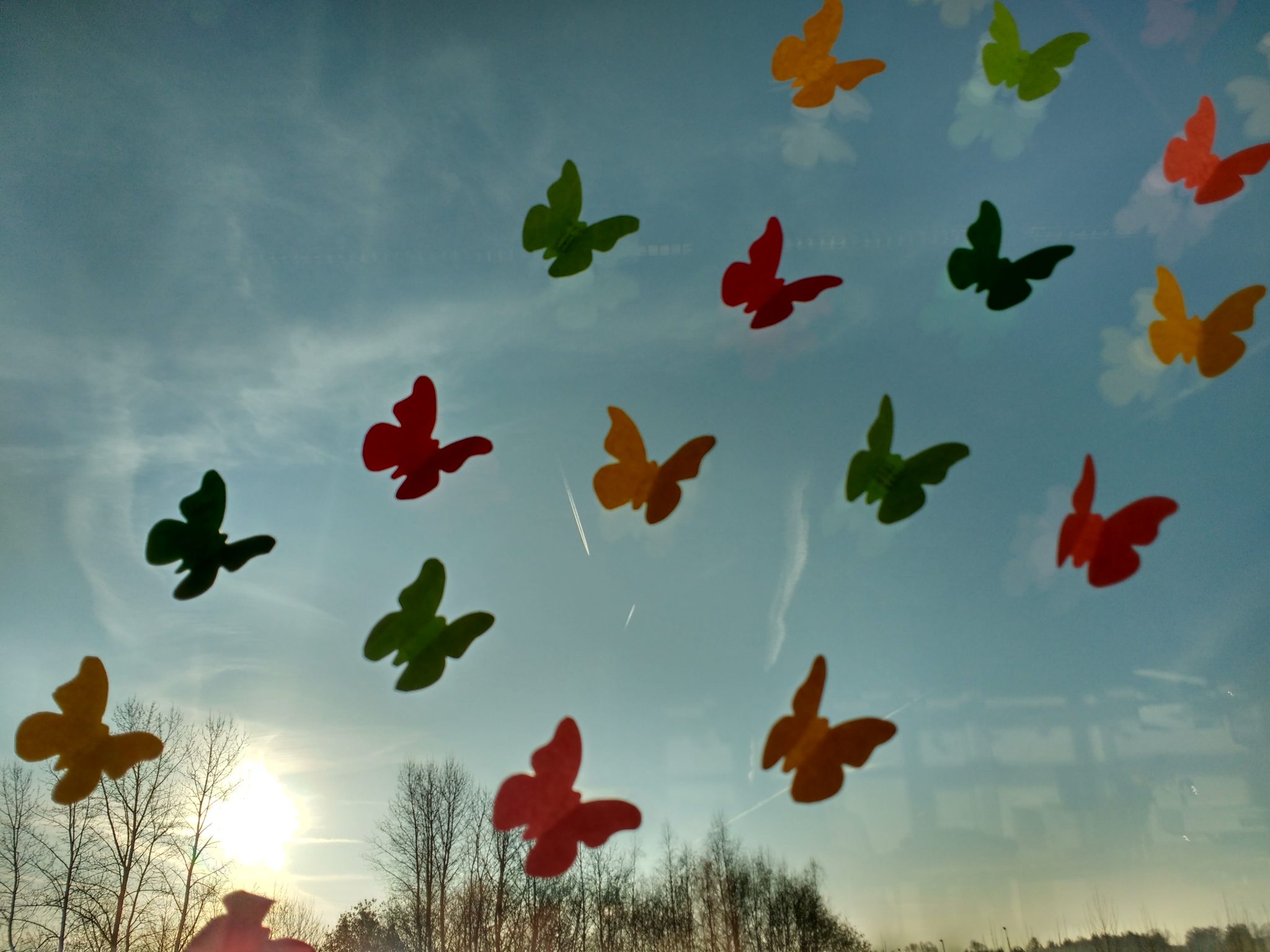 Das Klassenzimmer war passend zum Frühling mit dutzenden bunten Schmetterlingen und frischen Blumen dekoriert.